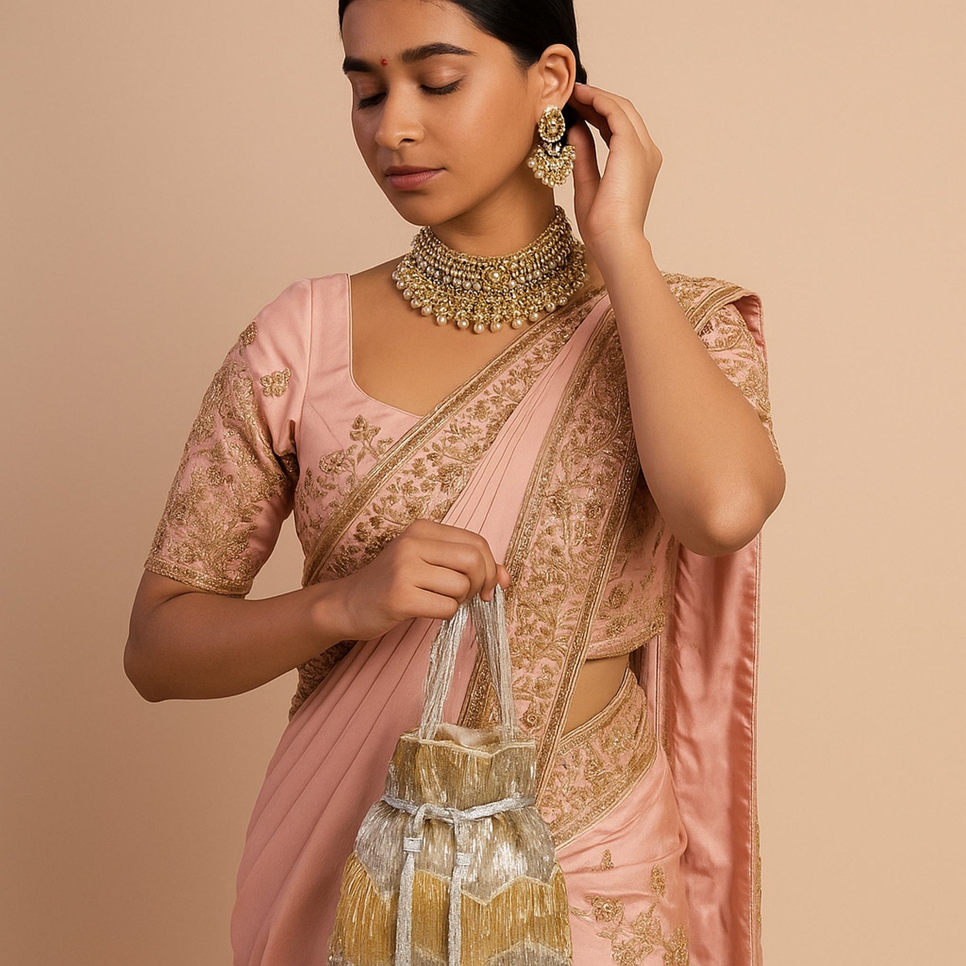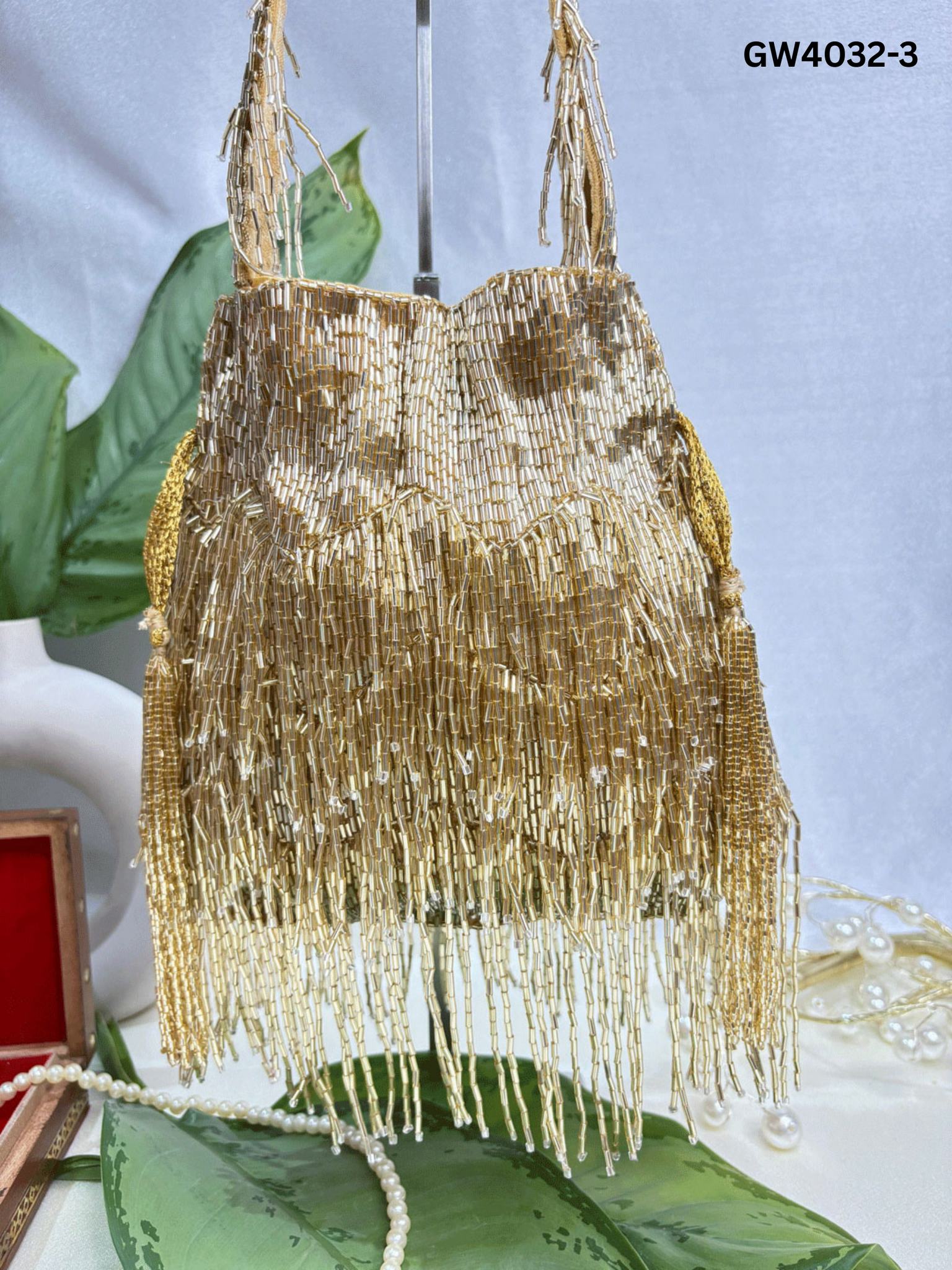 Golden & Silver Beaded Fringe Potli Bag| Trendy Crafts