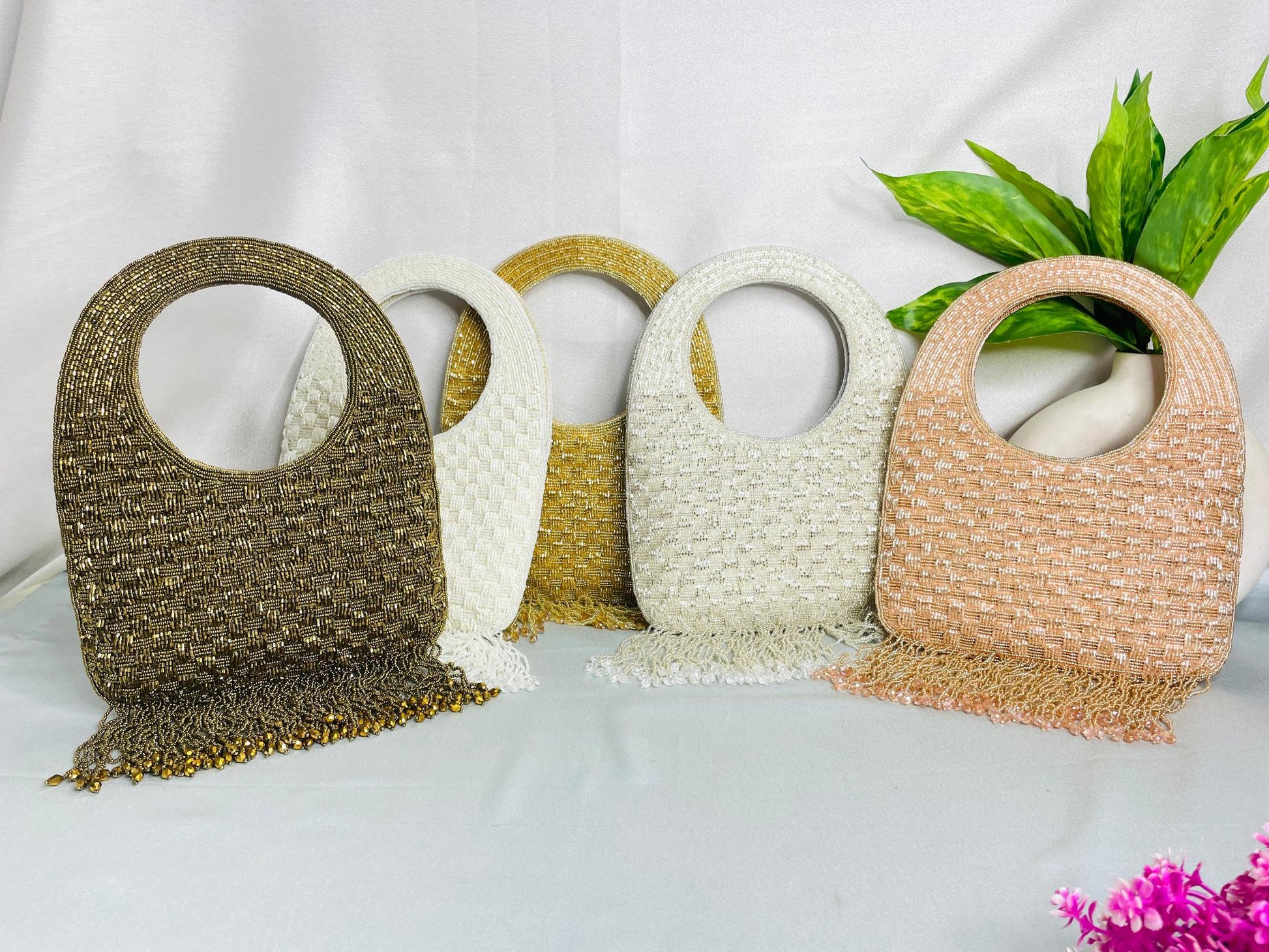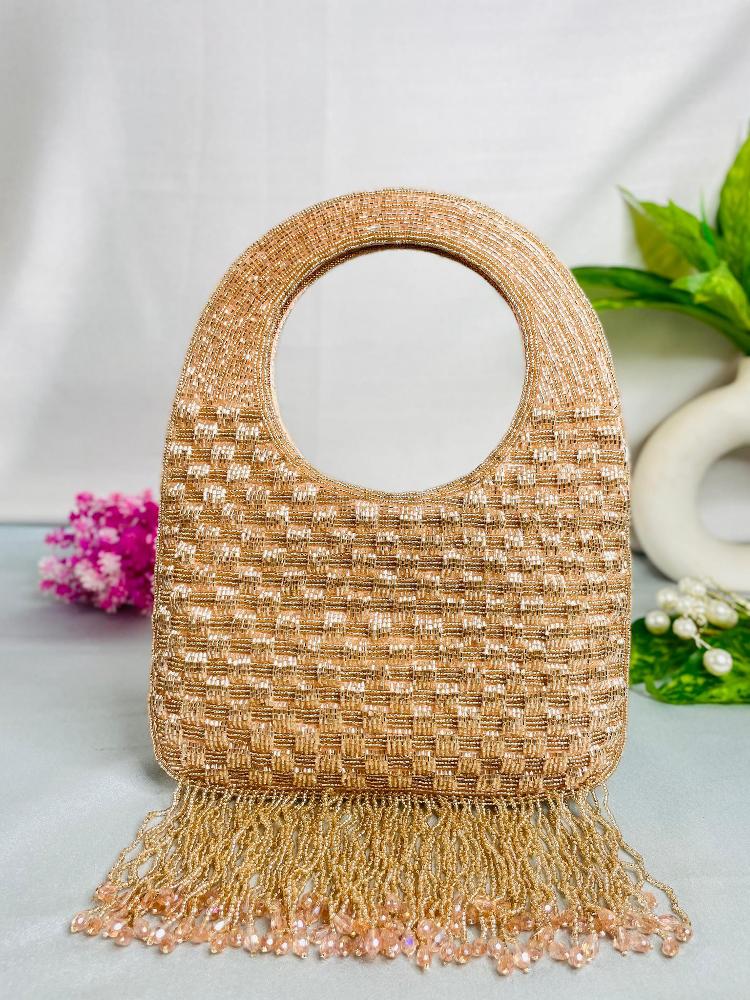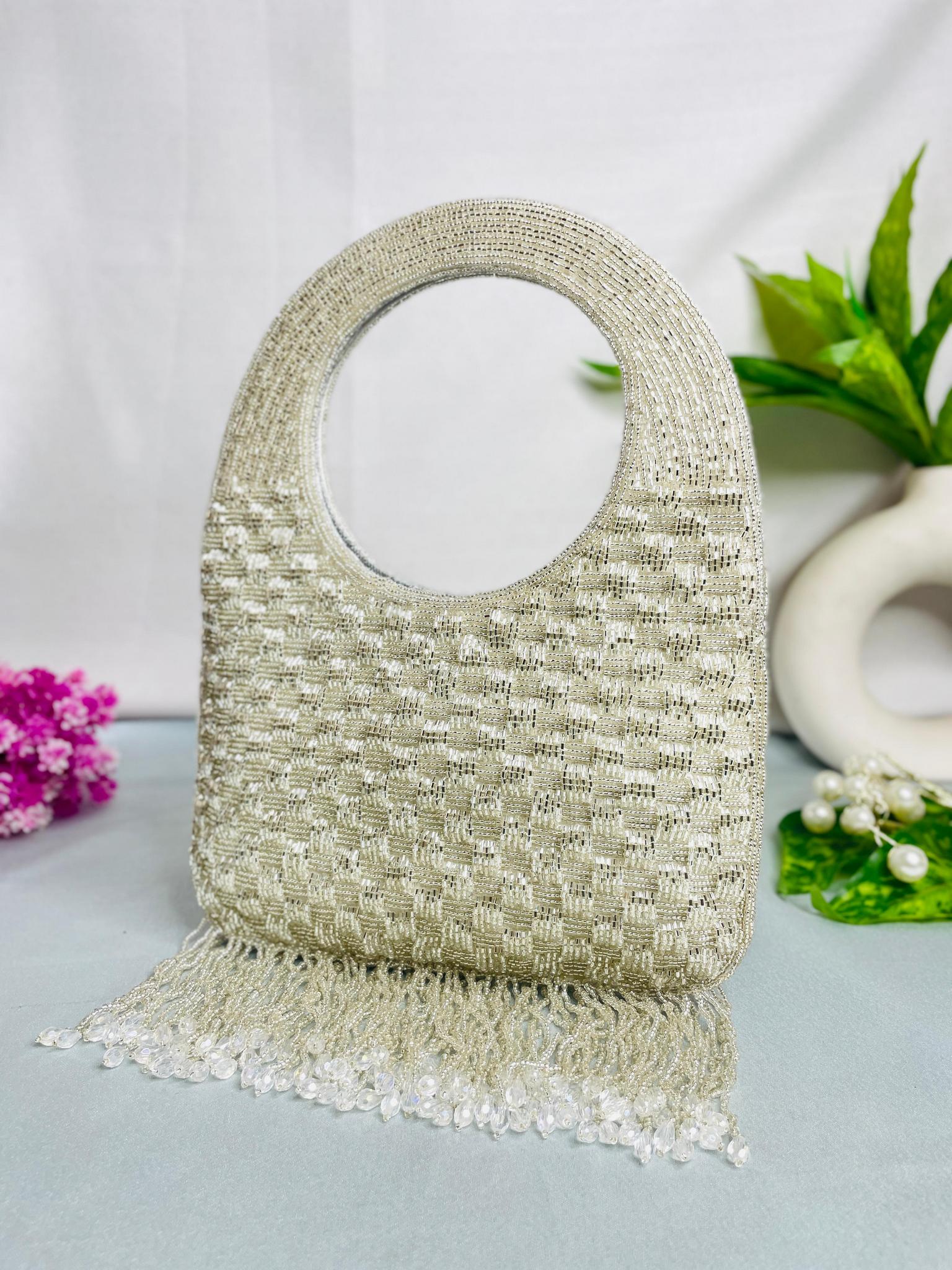 Hand-Beaded Fringe Handle Clutch – A Statement of Subtle Glam by Trendy Crafts
